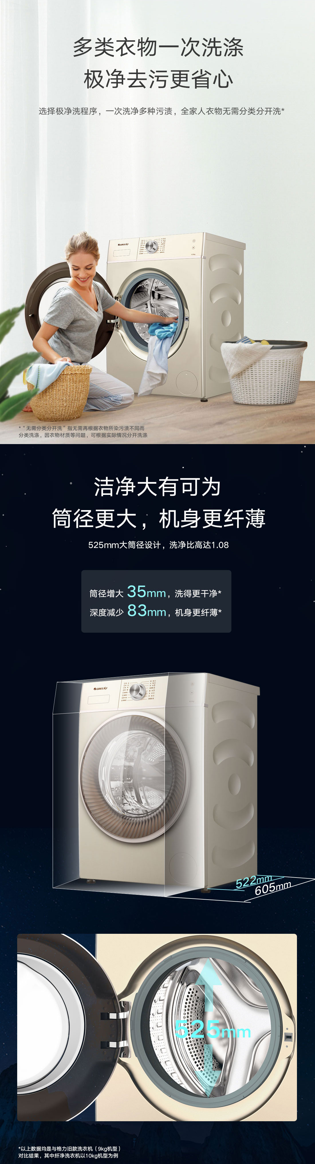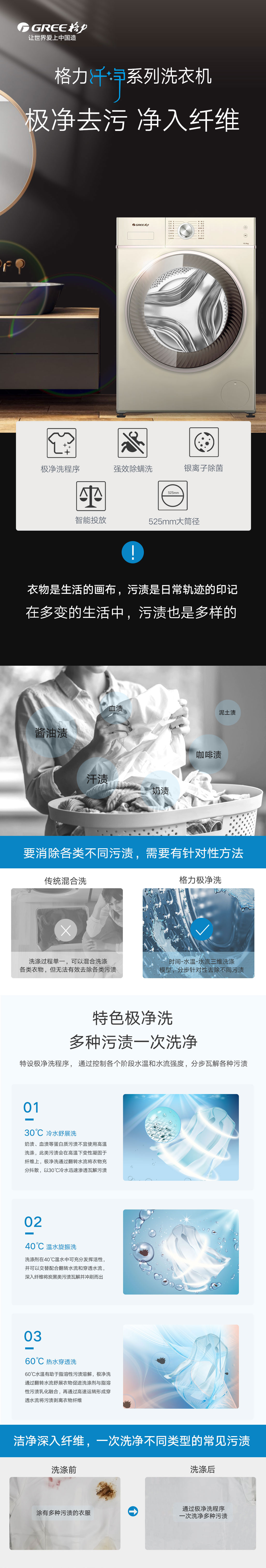 極凈去污,一次洗凈多類污漬,全家人衣物無需分類分開洗。