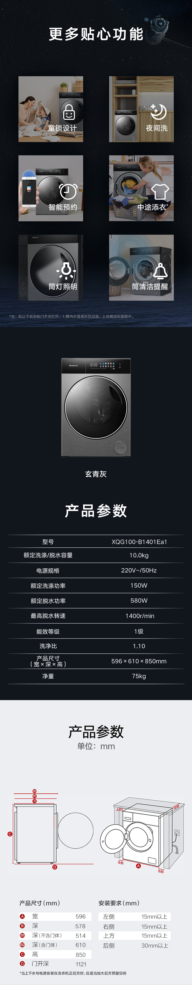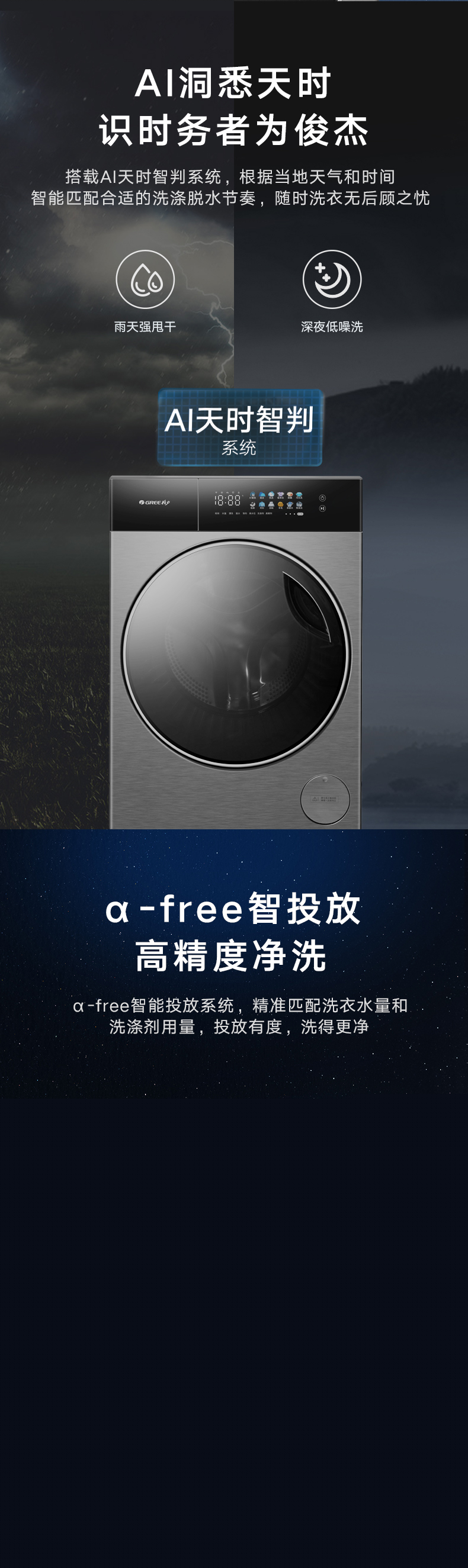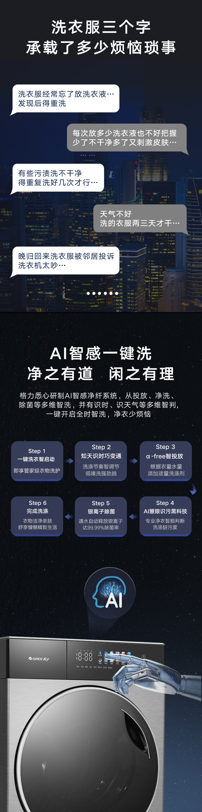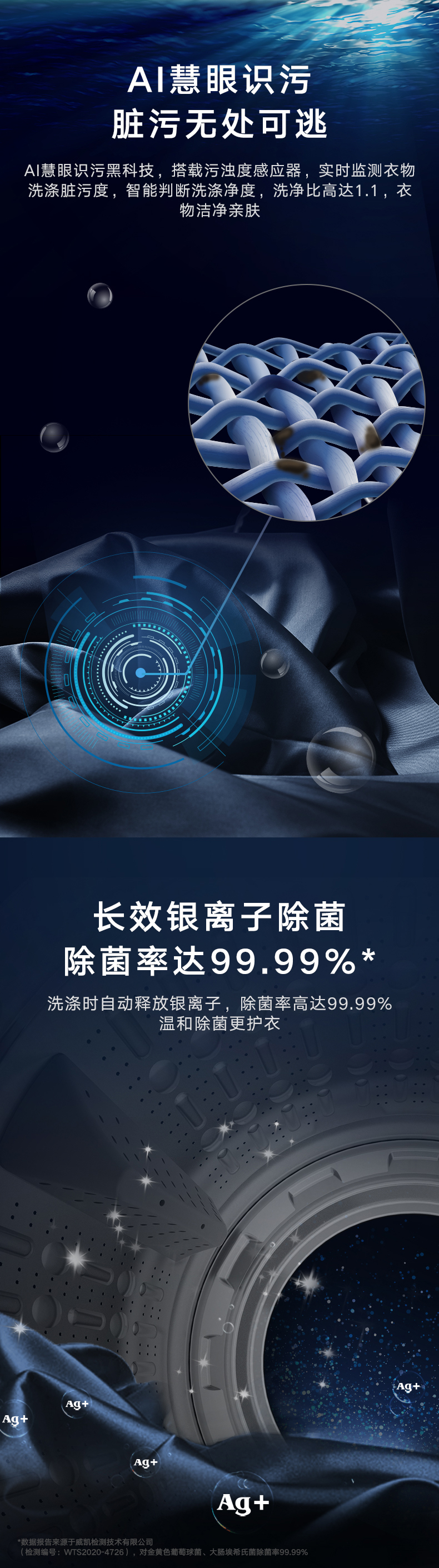 AI智能感應,臟污一鍵洗凈。AI慧眼識污,智能判斷洗滌凈度,洗凈比高達1.1