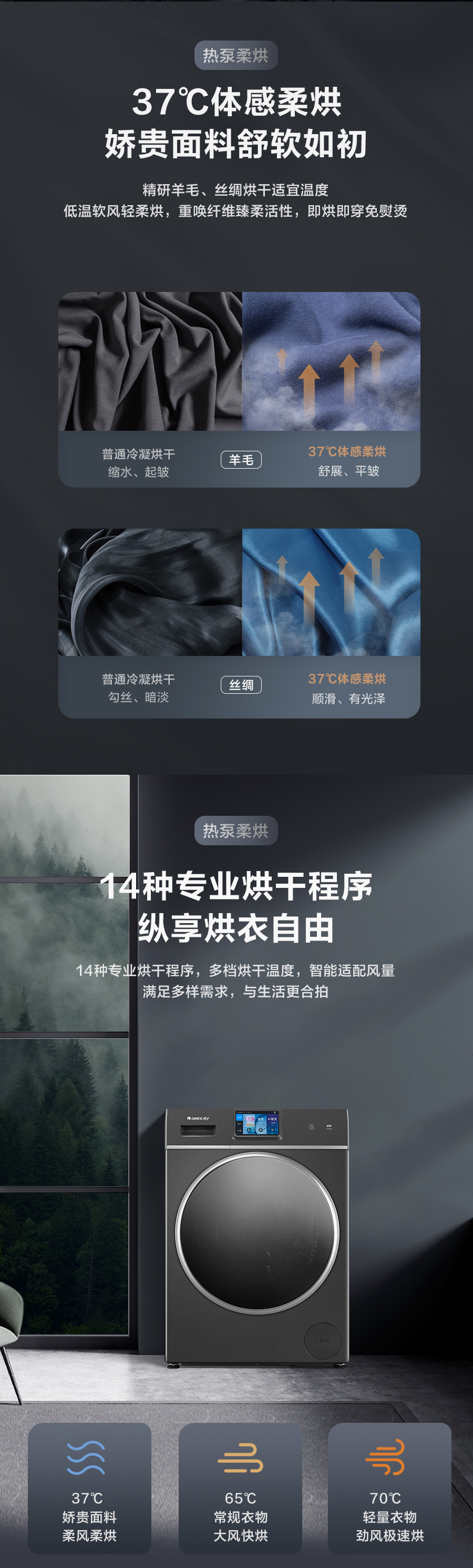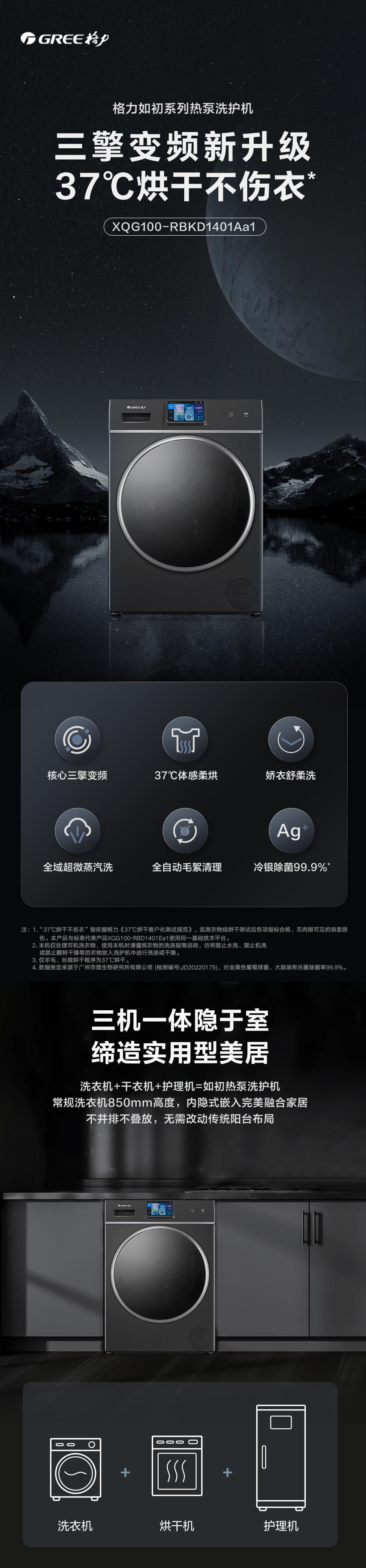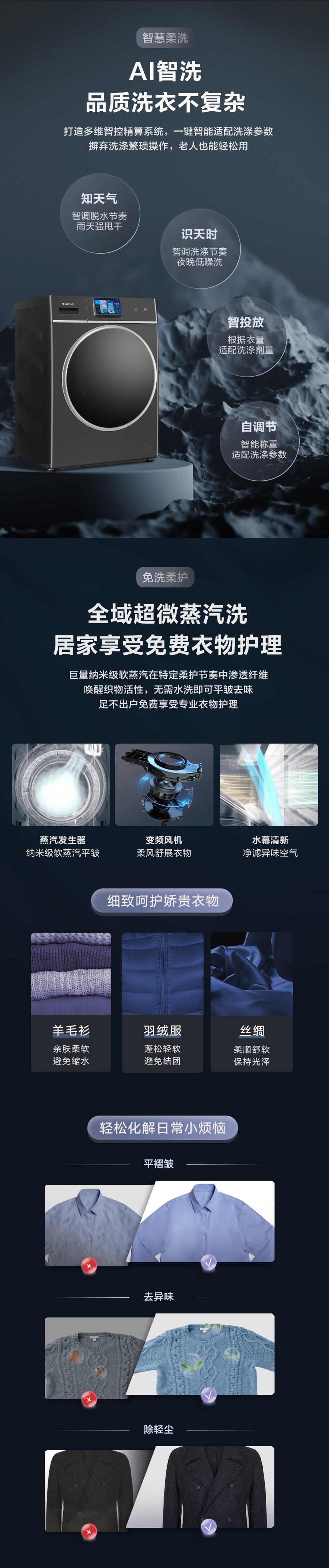 37℃低溫柔烘不傷衣;全域超微蒸汽洗;ICleaner全域智清潔
